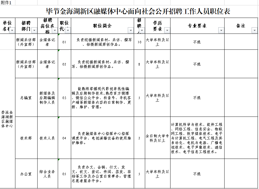附件:1.毕节金海湖新区融媒体中心面向社会公开招聘工作人员职位表.xls