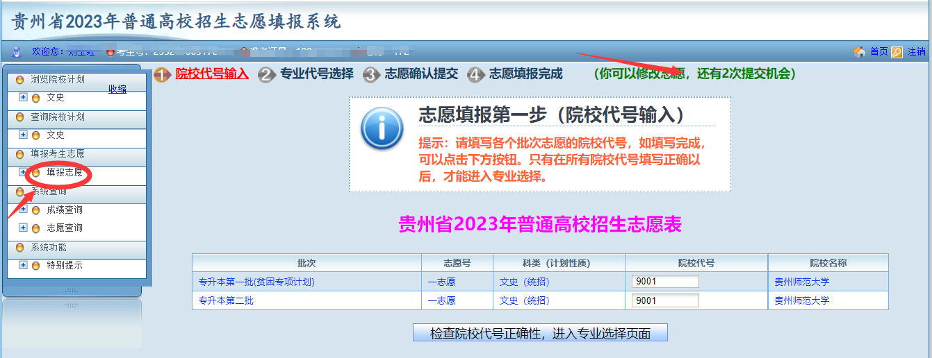 (五)考生可提交三次志愿,考生第一次填报提交志愿后可有两次机会对志愿进行修改提交。系统以考生最后一次提交的志愿为准,考生提交三次志愿后不能再修改志愿。