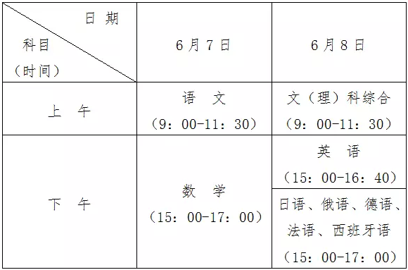 贵州省普通高校招生全国统一考试将于6月7日开考,具体考试日程安排如下: